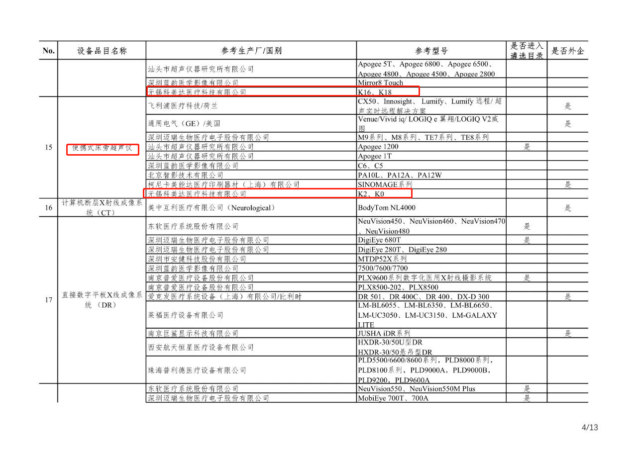 無錫科美達(dá)彩超進(jìn)入新冠肺炎疫情防治急需醫(yī)學(xué)裝備目錄